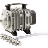 Widely used to provide oxygen in aquariums, fish farms and hydroponic systems. Includes chrome air manifold, ranging from six to twelve outlets. Cylinders and pistons are made of premium materials, making the pump strong and durable. Convenient to operate without oil or much noise. All pumps now includes two different fittings. 728450 and 728455 comes with 1/4 in and 3/8 in fittings. 728457 and 728459 comes with 1/2 in and 3/8 in fittings.