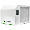 Quest 335 hyper-efficient standalone overhead dehumidifier featuring patented multi-coil refrigeration system, filter life compensating smart fan, patent-pending hybrid expansion valve, onboard digital controls, and scroll compressor.