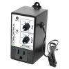 Temperature control range is 55°F to 95°F. Controls cooling or heating equipment. Day and night settings keep temperature within 4°F of set point. 6 ft temperature probe is accurate to within 2°F. Enclosure protects internal components from dust, rust and moisture. ETL listed for commercial applications. 15 Amps/ 120 V/ 60 Hz.